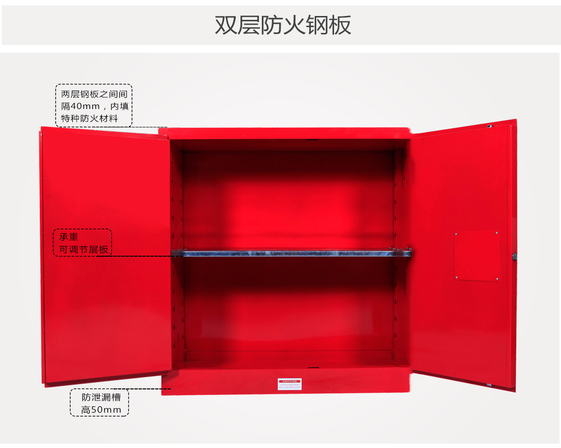 1:TQ腾其防火安全柜整体为双层1.2mm防火钢板构造,两层钢板之间间隔40mm,内填特种防火材料,防火性能更为卓越。柜体采用全焊接,非铆结构使其拥有更长的使用时间,因为减少了空气间隙可在着火时提供更好的防护。