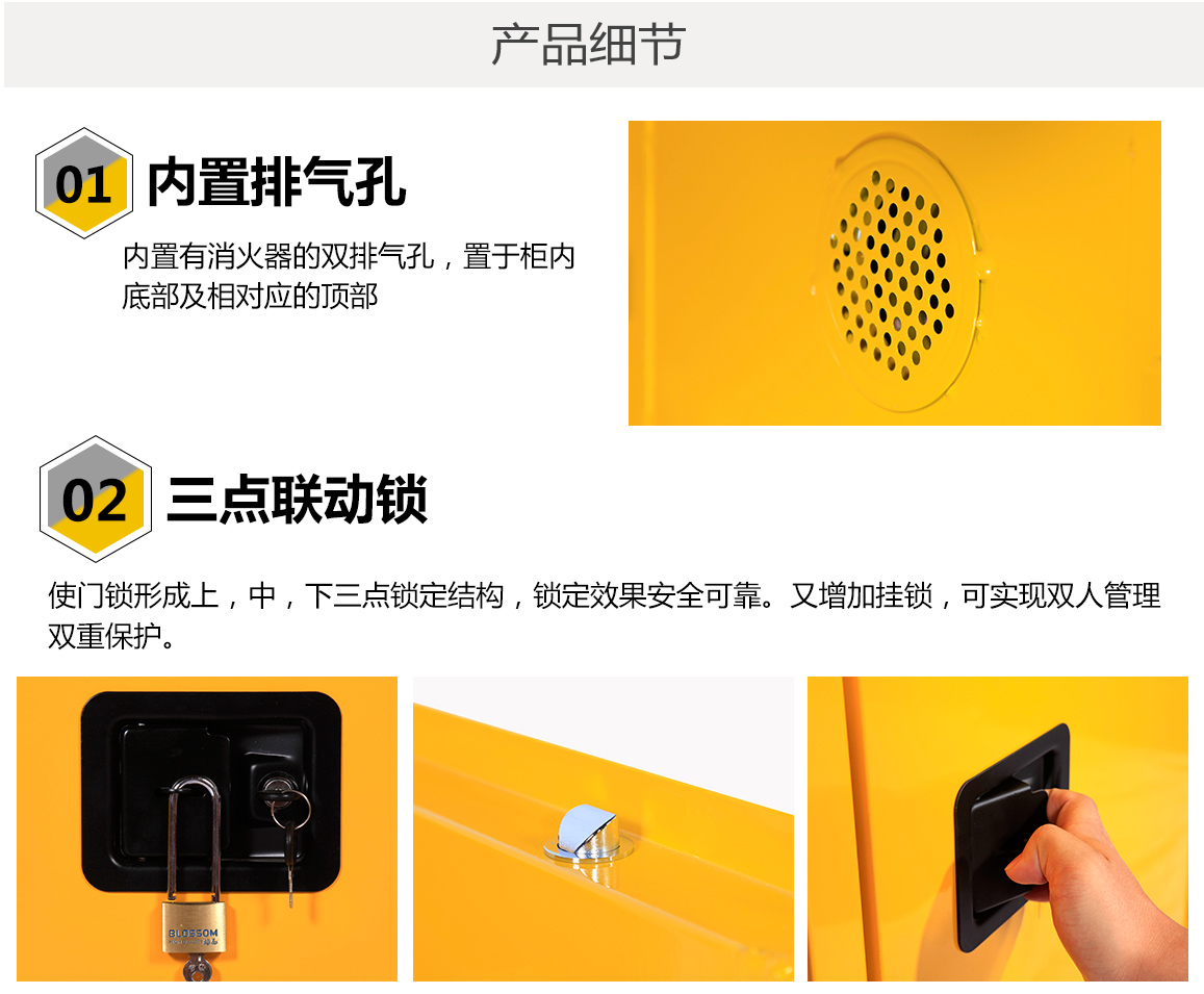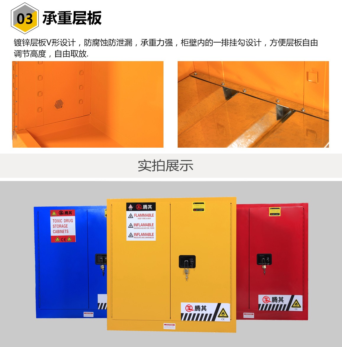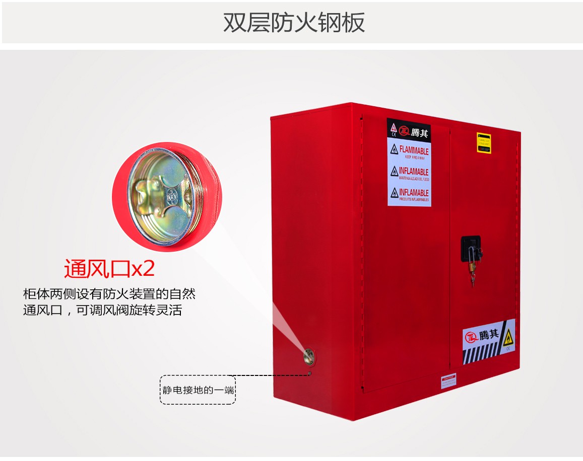 高性能的TQ腾其安全柜达到OSHA 29 CFR1910.106标准(美国职业安全健康管理局),符合NFPA CODE30(美国国家消防协会)第30条规定的要求用于规范存储易燃易爆液体及危险化学品。