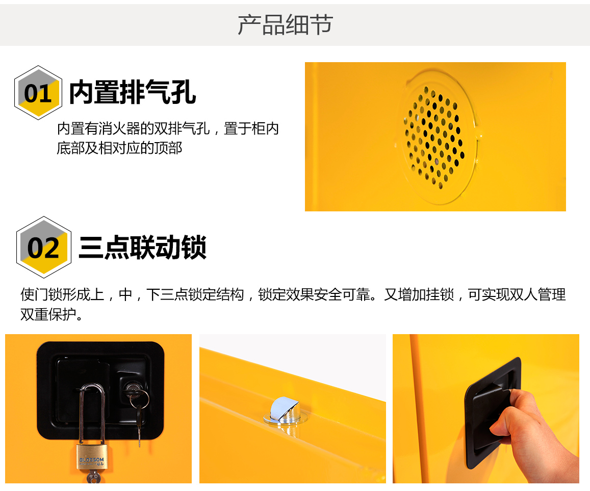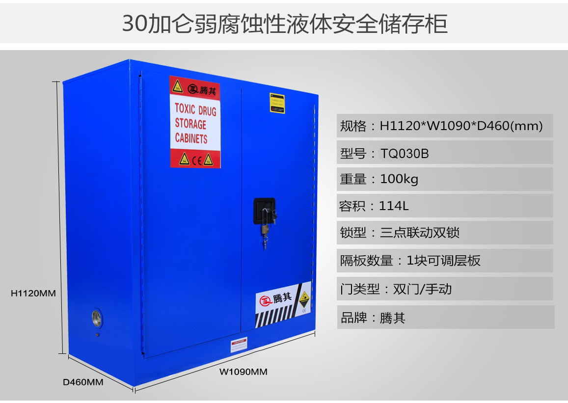 高性能的TQ腾其安全柜达到OSHA 29 CFR1910.106标准(美国职业安全健康管理局),符合NFPA CODE30(美国国家消防协会)第30条规定的要求用于规范存储易燃易爆液体及危险化学品。