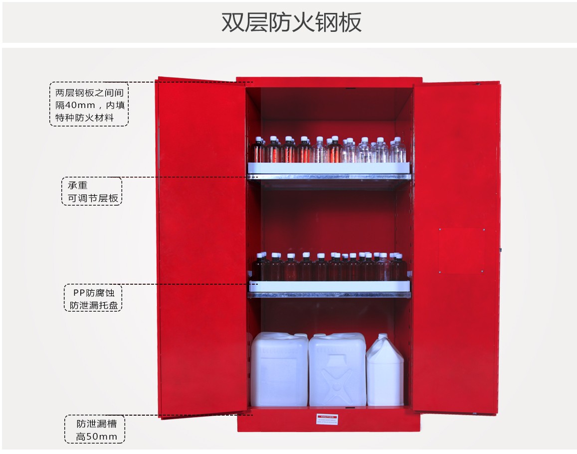 如果存放的是OSHA1910.106所提到的可燃的或易燃的化学品,存储设备建议采用基于美国防火协会第30条规定(NFPA 30)或者统一火灾法规79条(UFC 79)的规范所设计的防火安全柜。