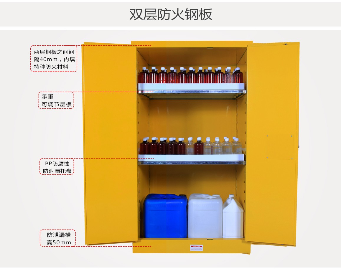 如果存放的是OSHA1910.106所提到的可燃的或易燃的化学品,存储设备建议采用基于美国防火协会第30条规定(NFPA 30)或者统一火灾法规79条(UFC 79)的规范所设计的防火安全柜。
