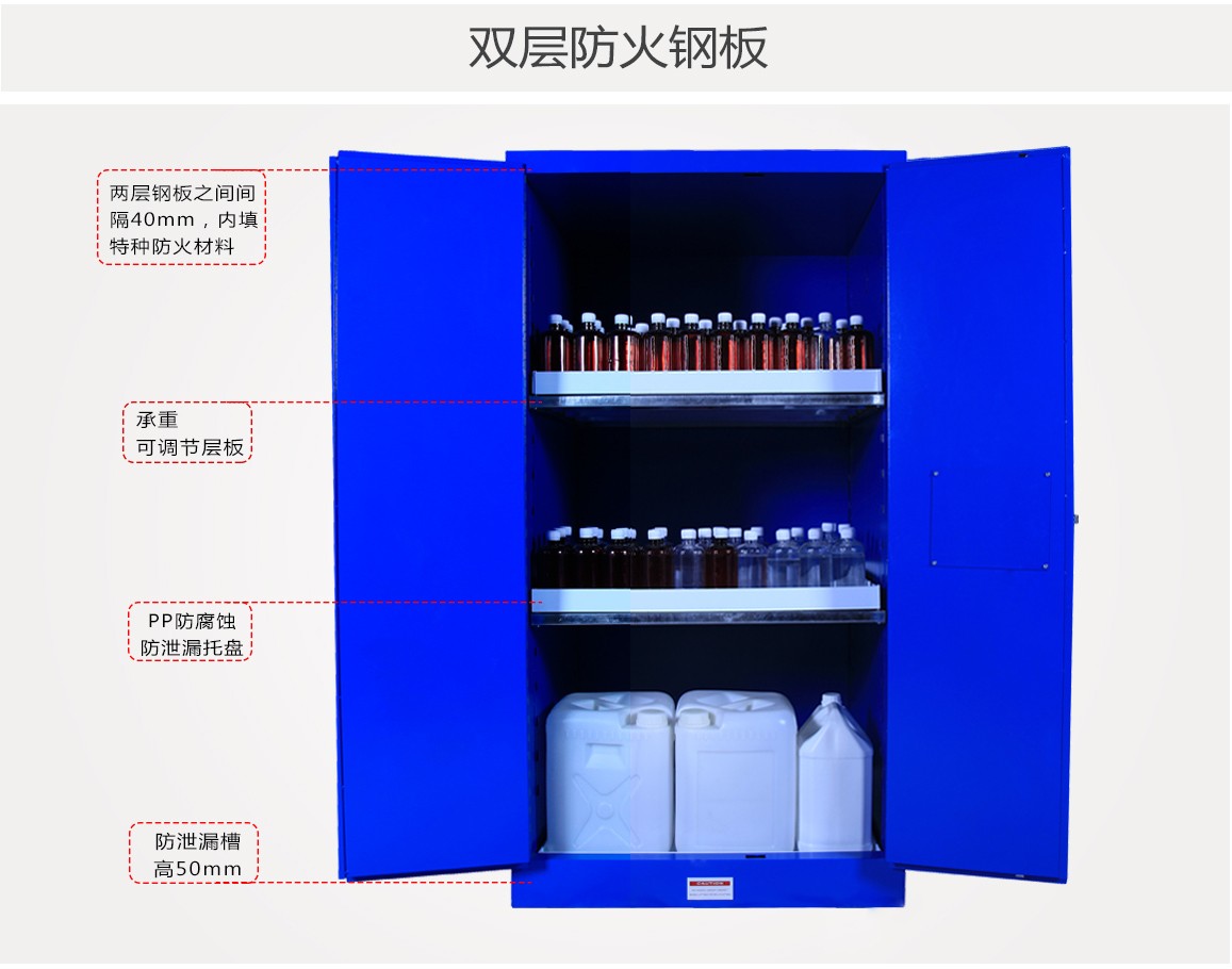 如果存放的是OSHA1910.106所提到的可燃的或易燃的化学品,存储设备建议采用基于美国防火协会第30条规定(NFPA 30)或者统一火灾法规79条(UFC 79)的规范所设计的防火安全柜。