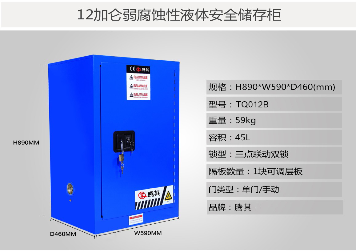 高性能的TQ腾其安全柜达到OSHA 29 CFR1910.106标准(美国职业安全健康管理局),符合NFPA CODE30(美国国家消防协会)第30条规定的要求用于规范存储易燃易爆液体及危险化学品。