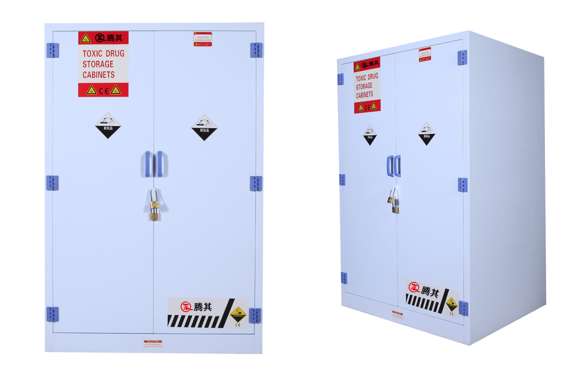 在各个工厂或实验室,都存放着大量具有强腐蚀性的化学品物质(例如:盐酸、硝酸或者氢氧化钠等化学品物质)。对于这类化学品物质的储存,显得尤其重要。目前,市场上面有很多类型的安全柜,用于分类存储不同性质及危险等级的化学品,但是,用于储存具有强腐蚀性的化学品,只有选择强酸强碱存储柜。