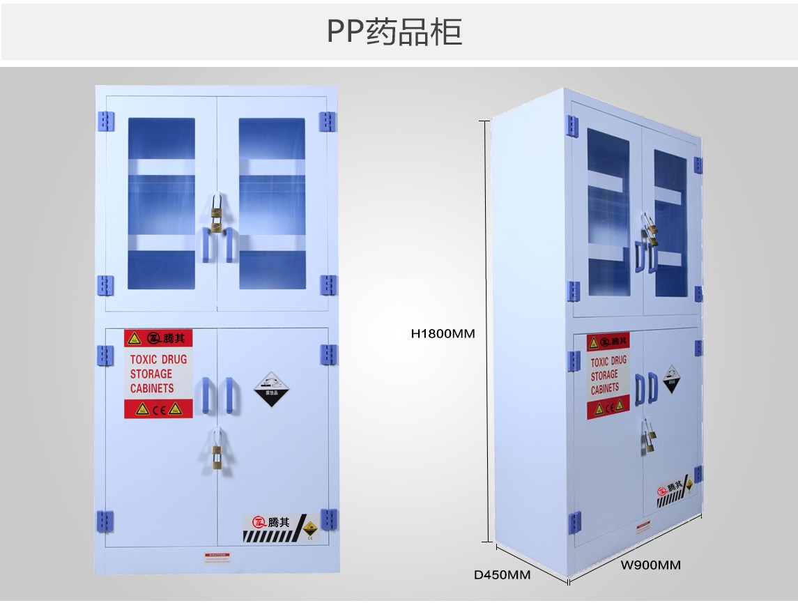 瓷白色PP聚丙烯抗强腐蚀性化学品安全储存柜的特点: