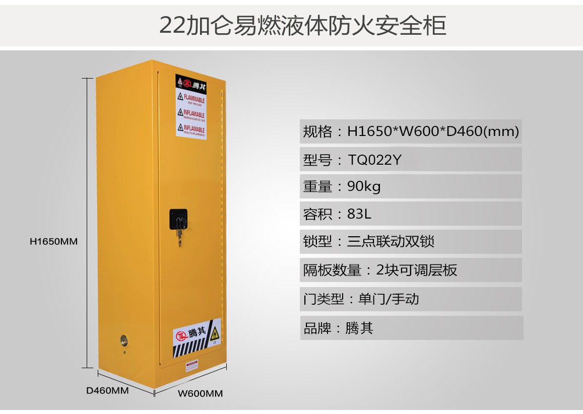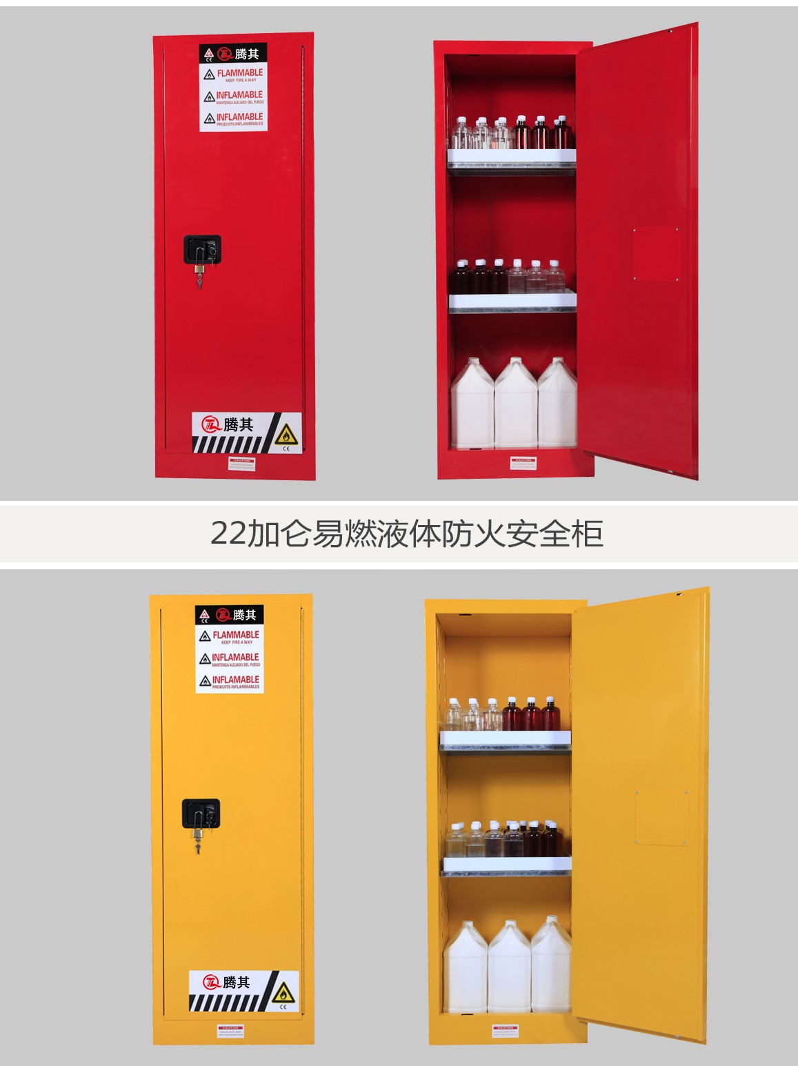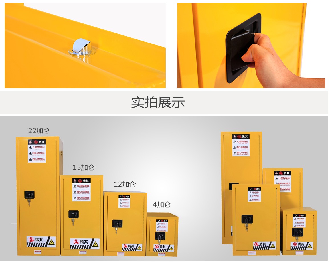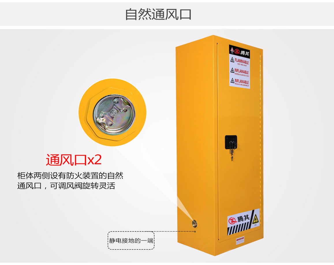高性能的TQ腾其安全柜达到OSHA 29 CFR1910.106标准(美国职业安全健康管理局),符合NFPA CODE30(美国国家消防协会)第30条规定的要求用于规范存储易燃易爆液体及危险化学品。