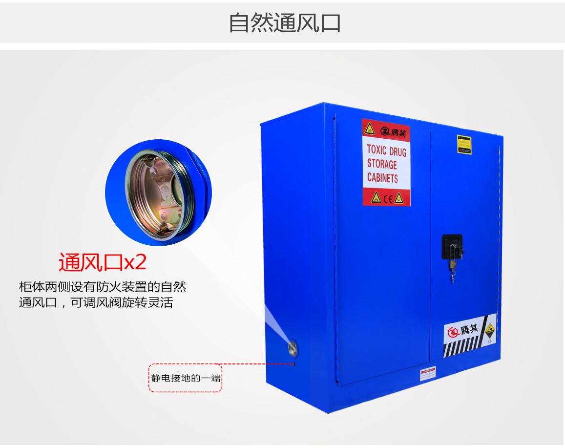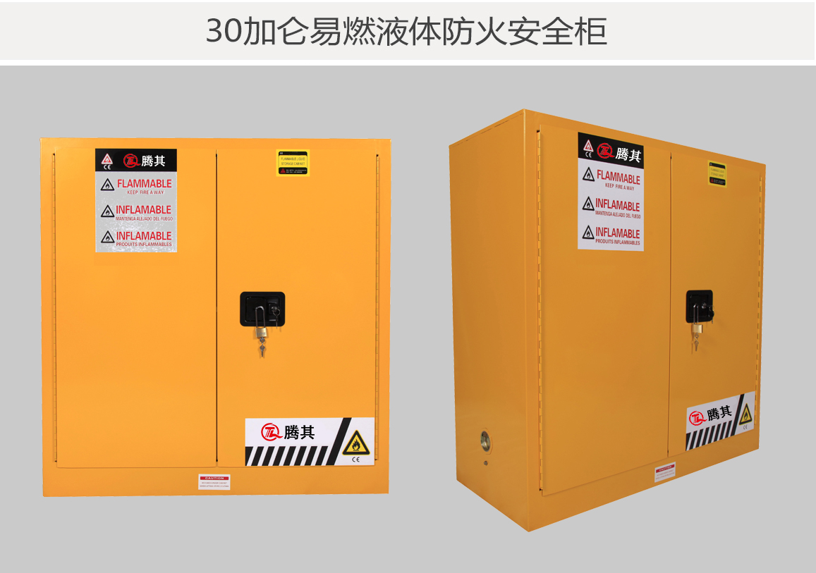 高性能的TQ腾其安全柜达到OSHA 29 CFR1910.106标准(美国职业安全健康管理局),符合NFPA CODE30(美国国家消防协会)第30条规定的要求用于规范存储易燃易爆液体及危险化学品。