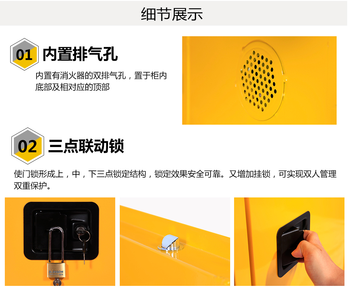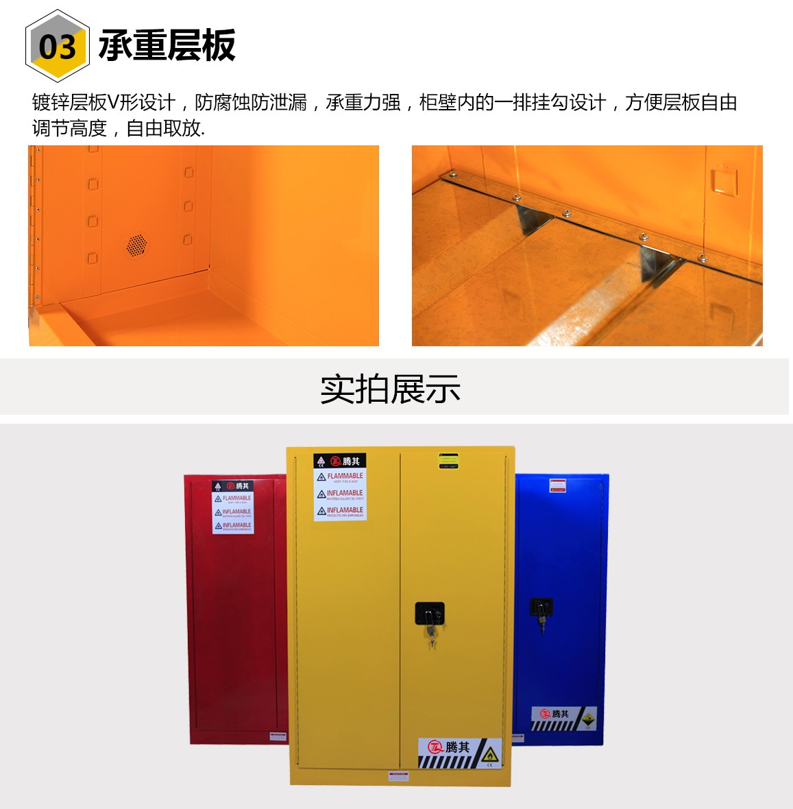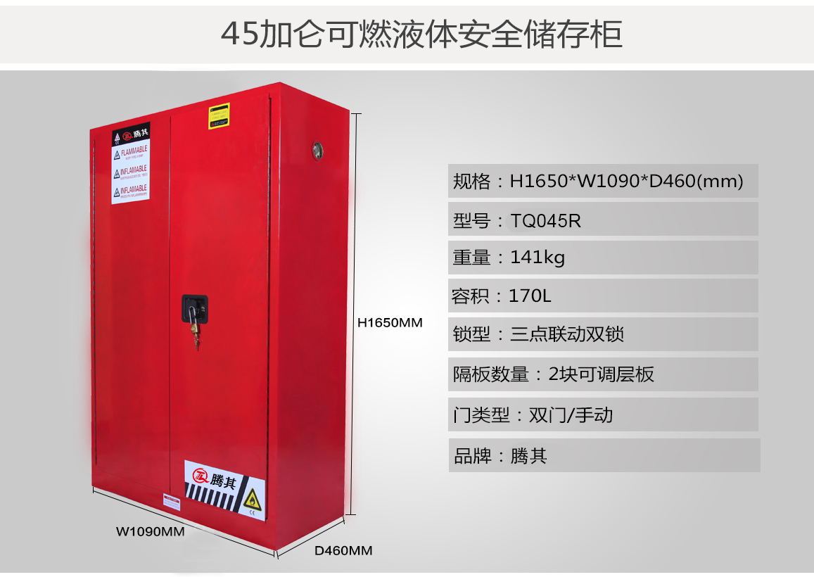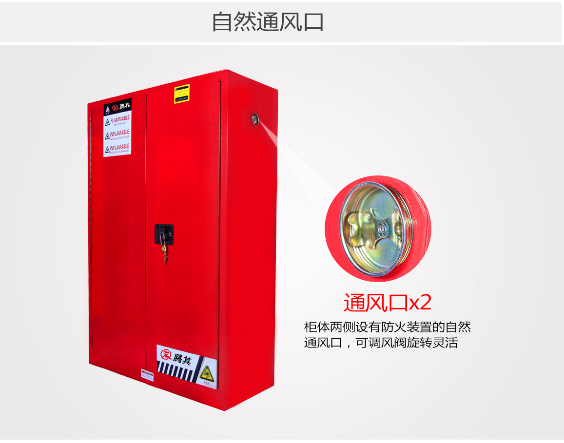 高性能的TQ腾其安全柜达到OSHA 29 CFR1910.106标准(美国职业安全健康管理局),符合NFPA CODE30(美国国家消防协会)第30条规定的要求用于规范存储易燃易爆液体及危险化学品。