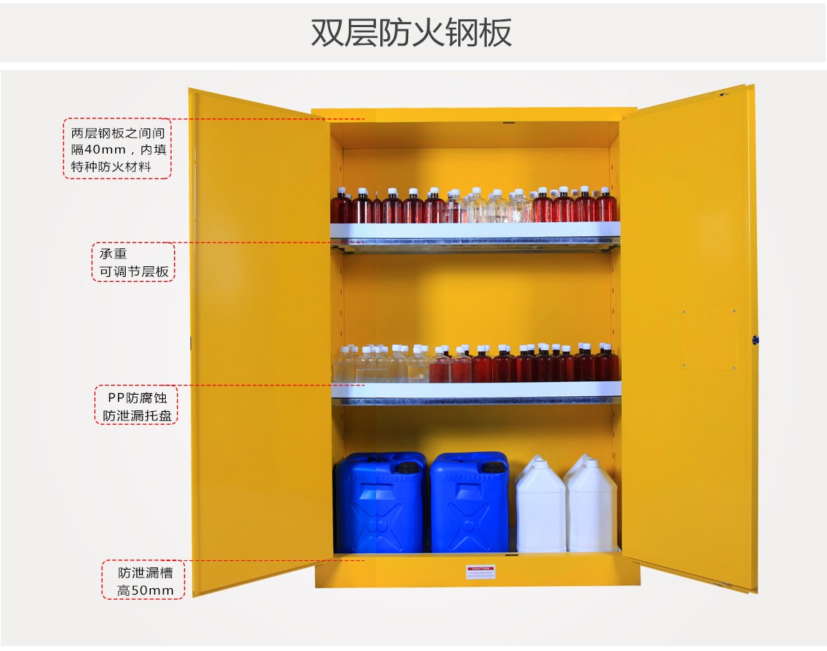 如果存放的是OSHA1910.106所提到的可燃的或易燃的化学品,存储设备建议采用基于美国防火协会第30条规定(NFPA 30)或者统一火灾法规79条(UFC 79)的规范所设计的防火安全柜。