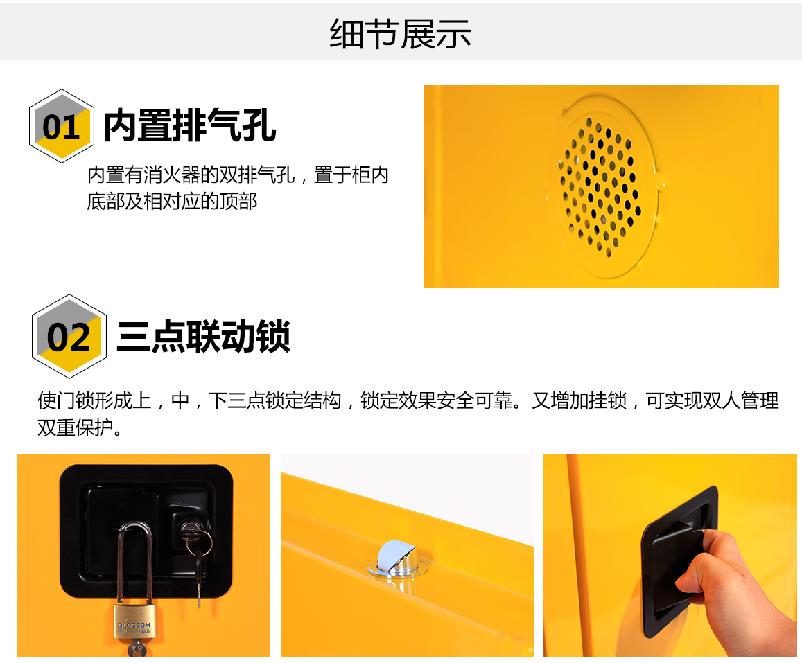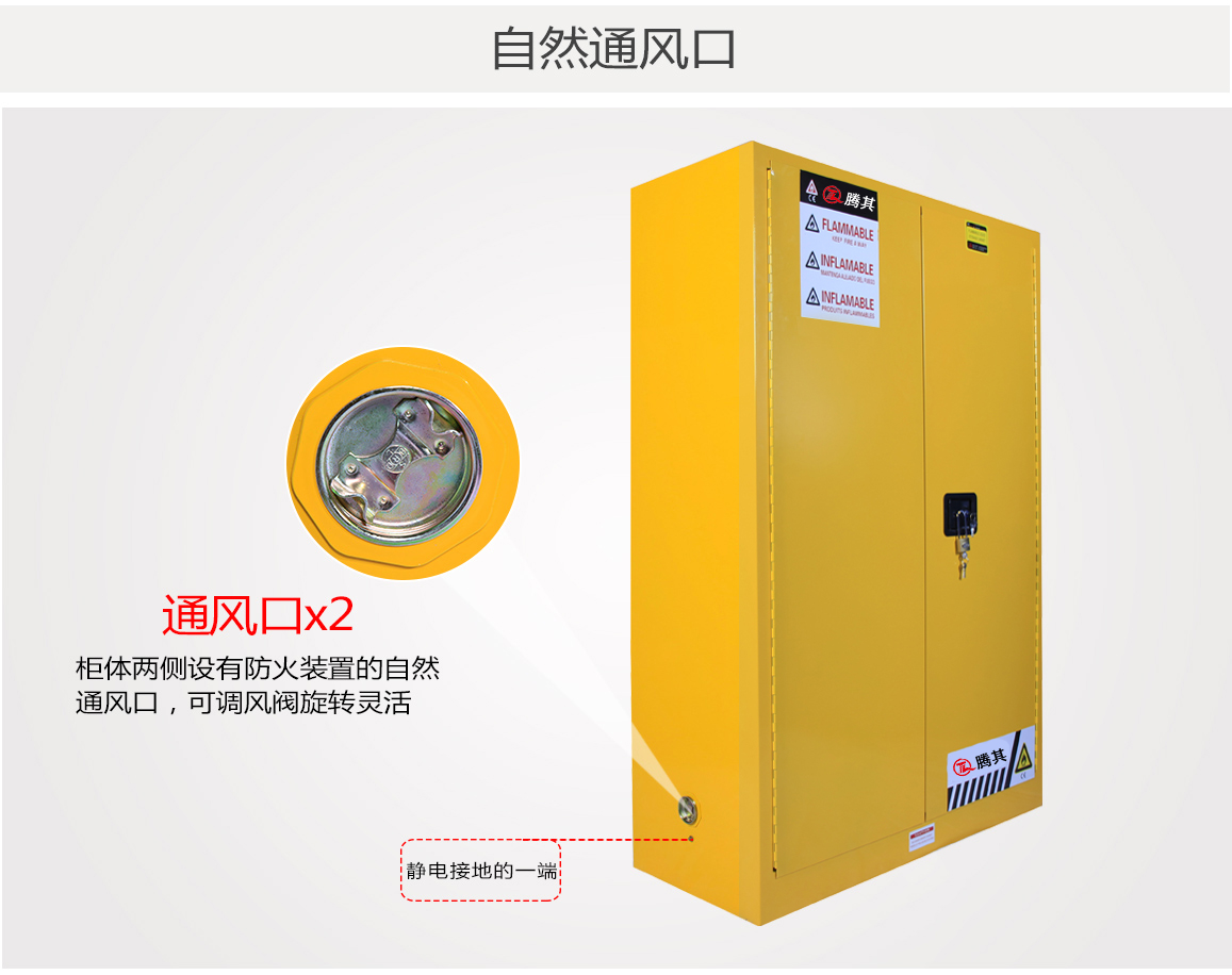 高性能的TQ腾其安全柜达到OSHA 29 CFR1910.106标准(美国职业安全健康管理局),符合NFPA CODE30(美国国家消防协会)第30条规定的要求用于规范存储易燃易爆液体及危险化学品。