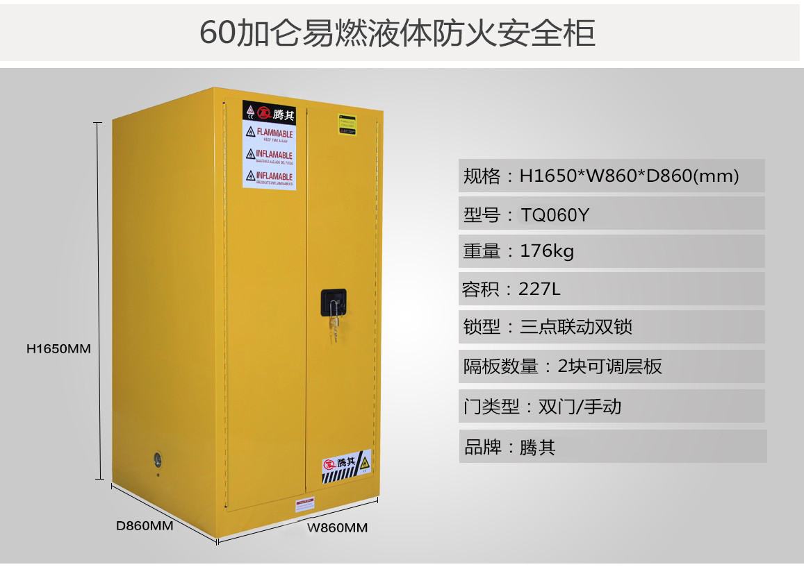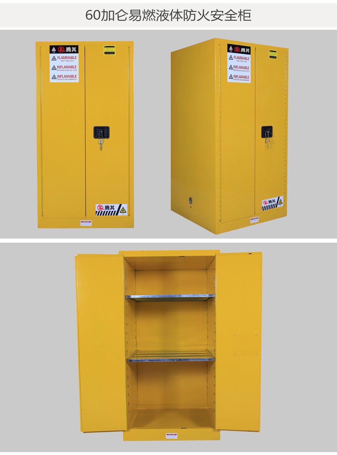 高性能的TQ腾其安全柜达到OSHA 29 CFR1910.106标准(美国职业安全健康管理局),符合NFPA CODE30(美国国家消防协会)第30条规定的要求用于规范存储易燃易爆液体及危险化学品。