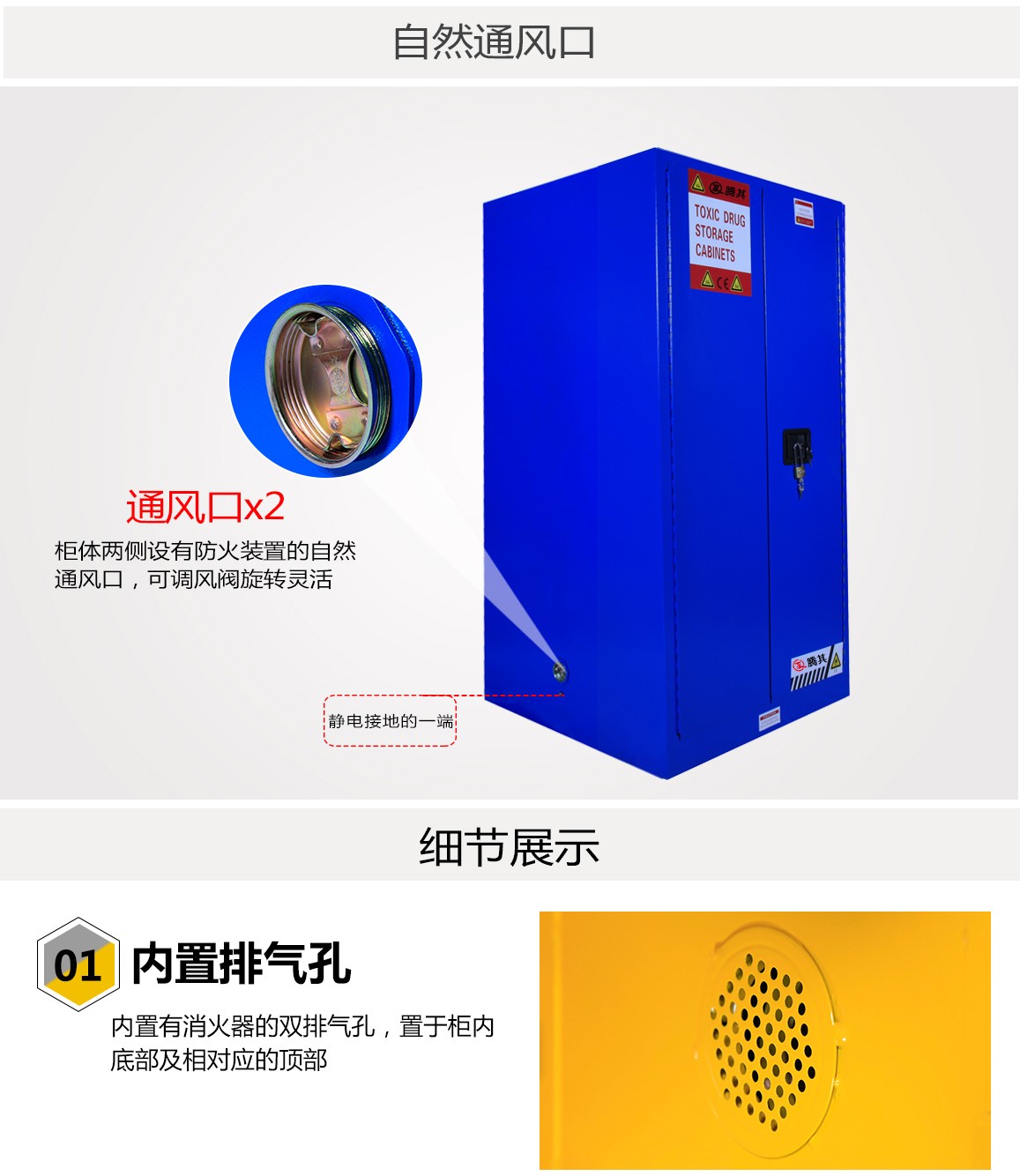 10:严格按照OSHA规范,柜身设有静电接地传导端口,方便连接静电接地导线。
