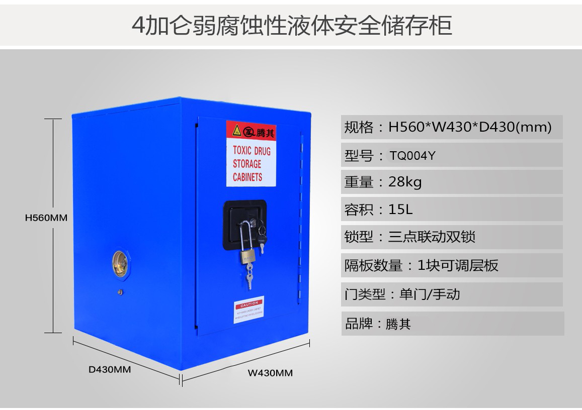 产品名称: 4加仑弱腐蚀性液体安全储存柜