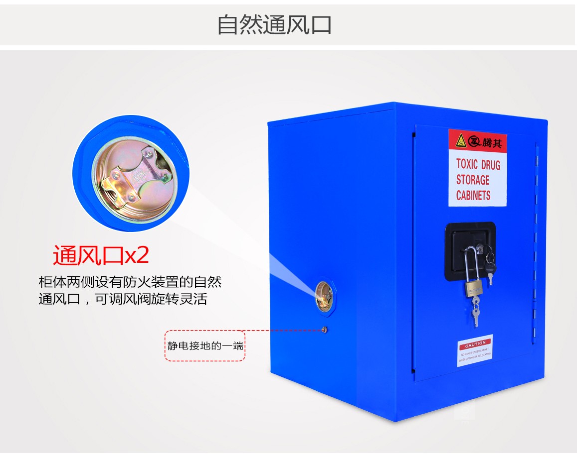 高性能的TQ腾其安全柜达到OSHA 29 CFR1910.106标准(美国职业安全健康管理局),符合NFPA CODE30(美国国家消防协会)第30条规定的要求用于规范存储易燃易爆液体及危险化学品。