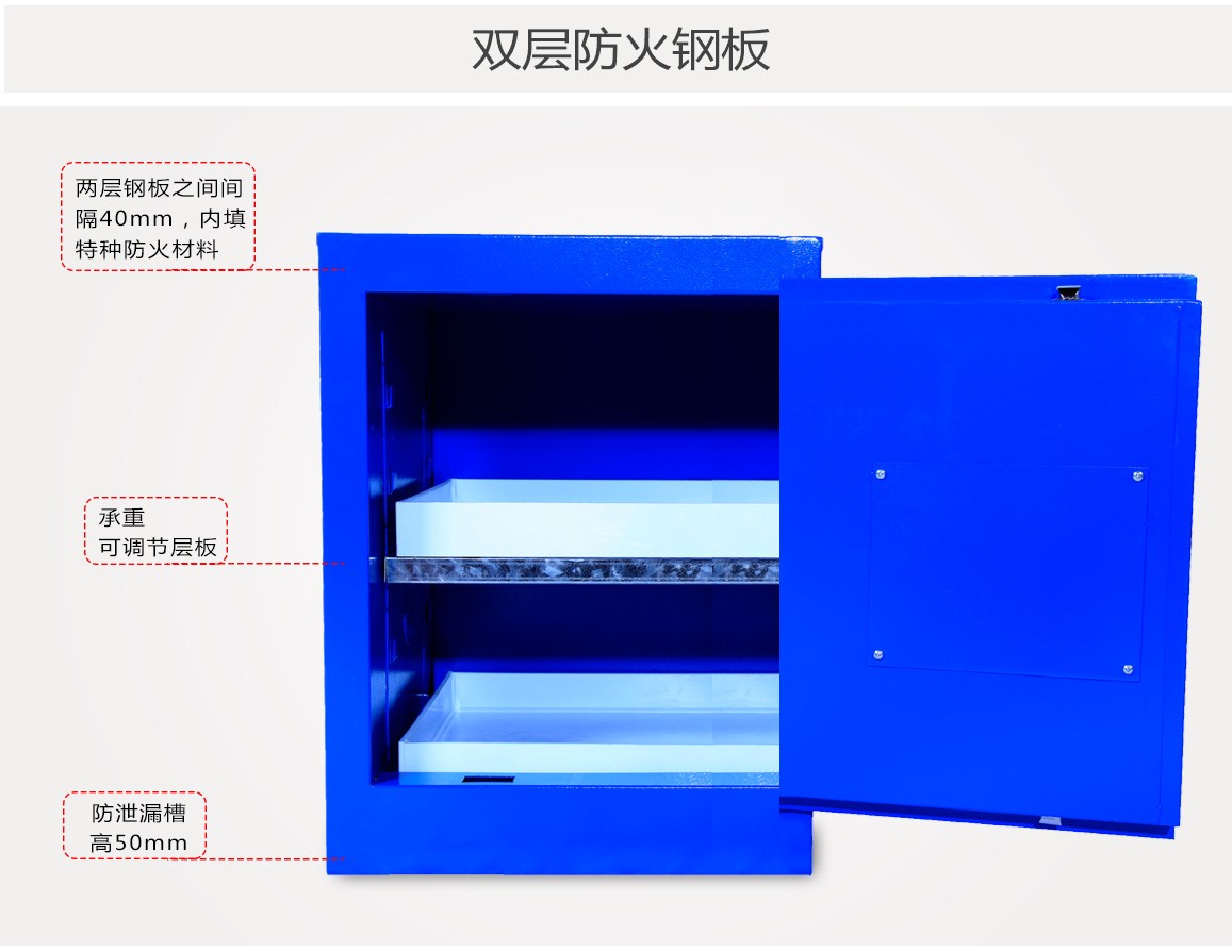 如果存放的是OSHA1910.106所提到的可燃的或易燃的化学品,存储设备建议采用基于美国防火协会第30条规定(NFPA 30)或者统一火灾法规79条(UFC 79)的规范所设计的防火安全柜。