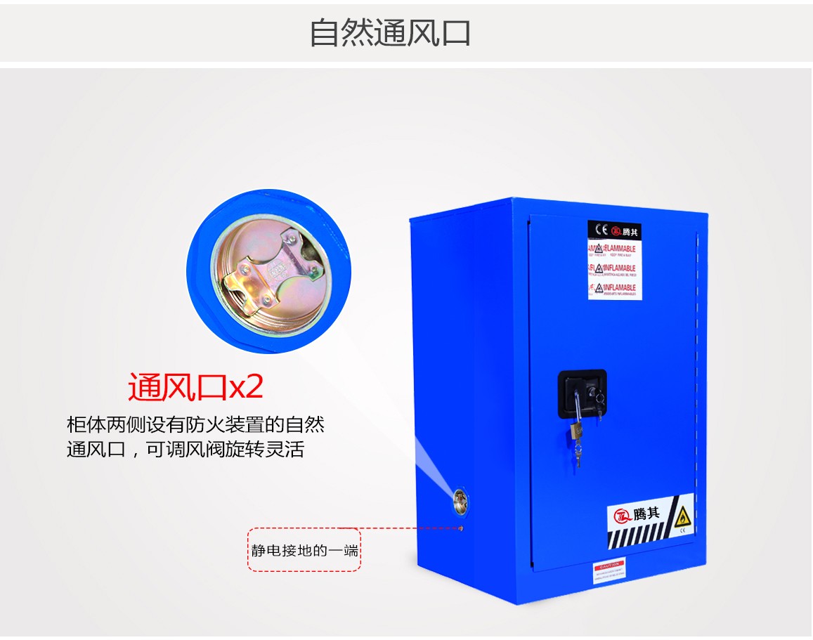 高性能的TQ腾其安全柜达到OSHA 29 CFR1910.106标准(美国职业安全健康管理局),符合NFPA CODE30(美国国家消防协会)第30条规定的要求用于规范存储易燃易爆液体及危险化学品。