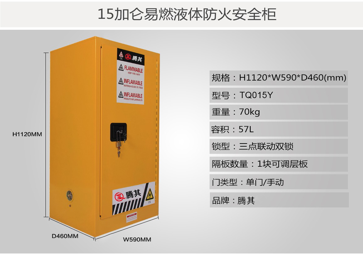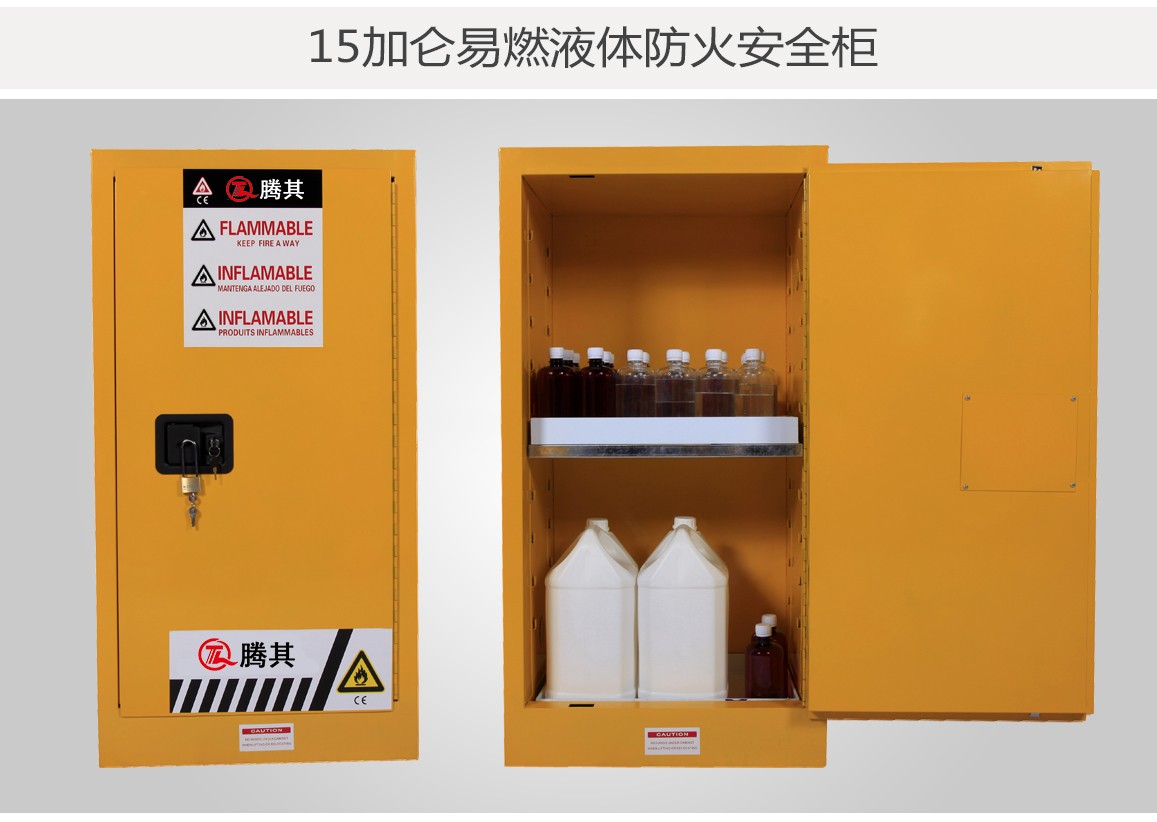 高性能的TQ腾其安全柜达到OSHA 29 CFR1910.106标准(美国职业安全健康管理局),符合NFPA CODE30(美国国家消防协会)第30条规定的要求用于规范存储易燃易爆液体及危险化学品。