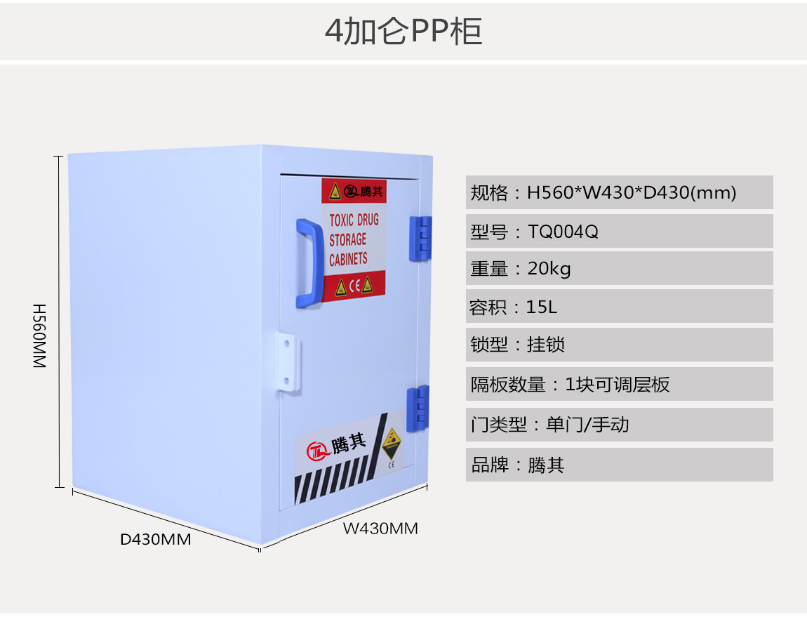 瓷白色PP聚丙烯抗强腐蚀性化学品安全储存柜的特点: