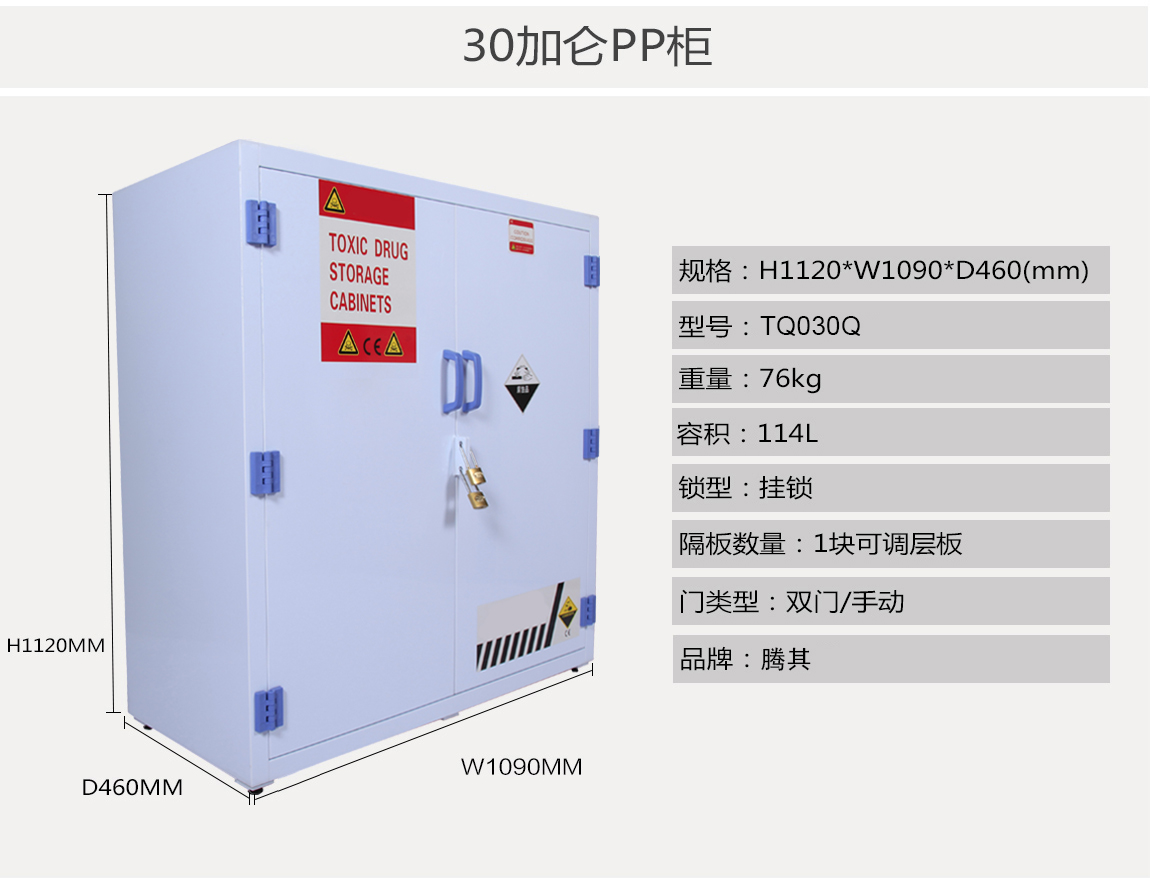 瓷白色PP聚丙烯抗强腐蚀性化学品安全储存柜的特点: