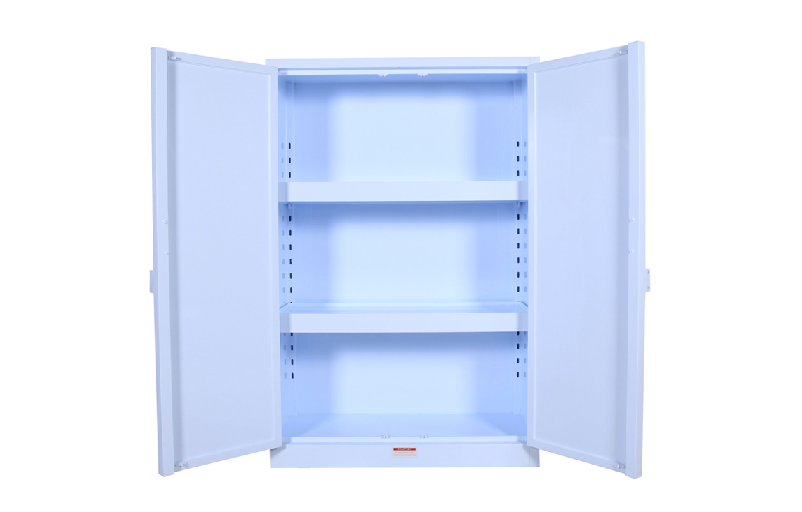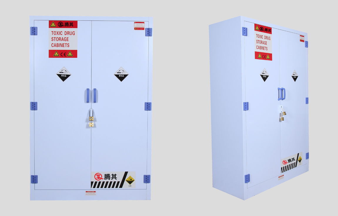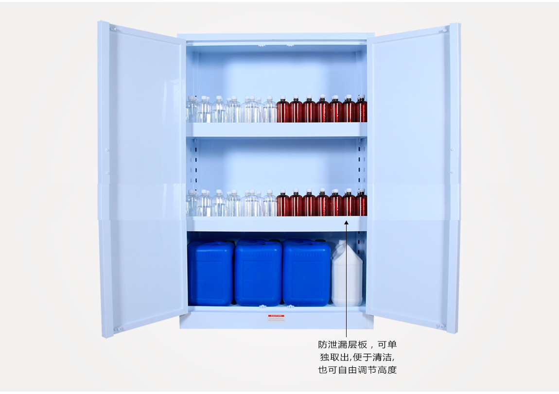 在各个工厂或实验室,都存放着大量具有强腐蚀性的化学品物质(例如:盐酸、硝酸或者氢氧化钠等化学品物质)。对于这类化学品物质的储存,显得尤其重要。目前,市场上面有很多类型的安全柜,用于分类存储不同性质及危险等级的化学品,但是,用于储存具有强腐蚀性的化学品,只有选择强酸强碱存储柜。