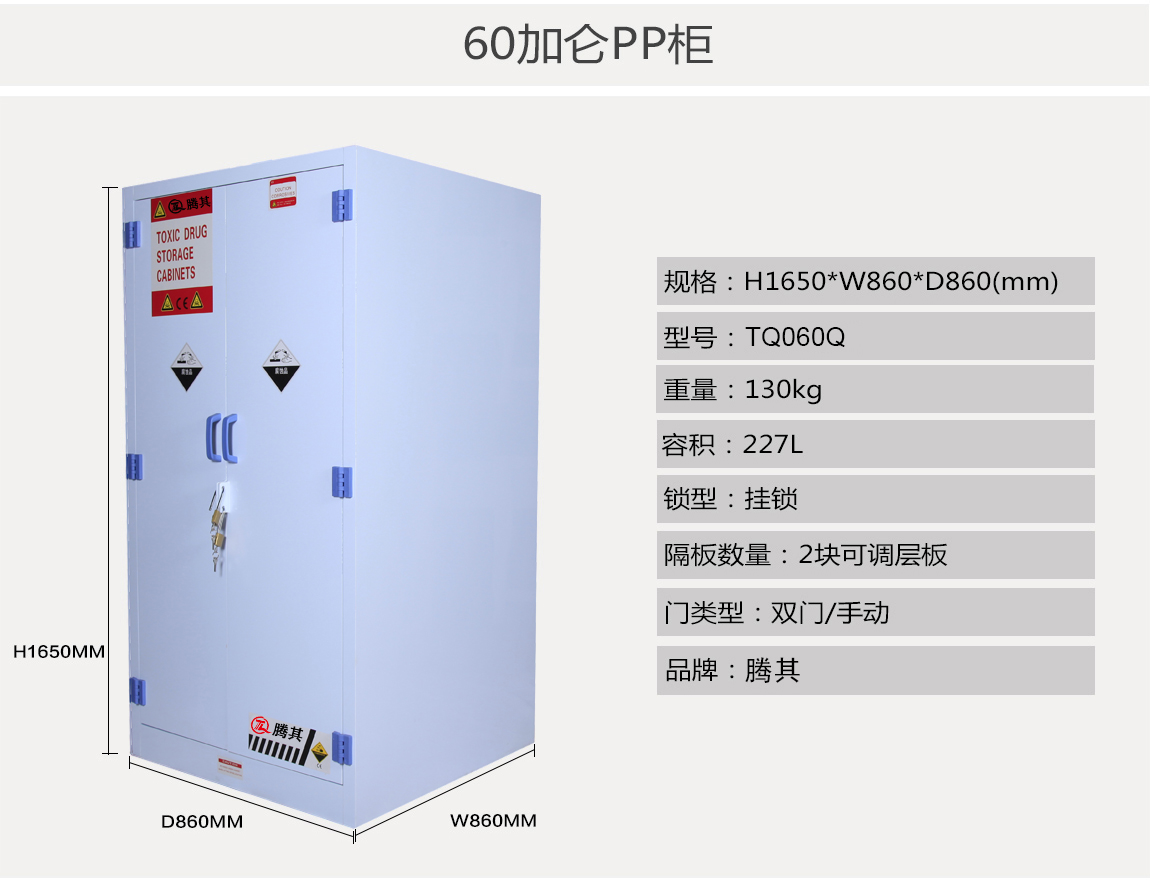 生产ANYOTE瓷白色PP聚丙烯抗强腐蚀性化学品安全储存柜,专业储存腐蚀性的化学品物质(例如硫酸、盐酸、硝酸、氢氧化钠 氢氧化钾等等),柜体采用抗强酸碱耐冲击的瓷白色PP板承制,采用同色同质焊条一体焊接成型。根据强腐蚀性化学品的存放量和使用的方便性,可以选择不同规格的瓷白色PP聚丙烯抗强腐蚀性化学品安全储存柜。