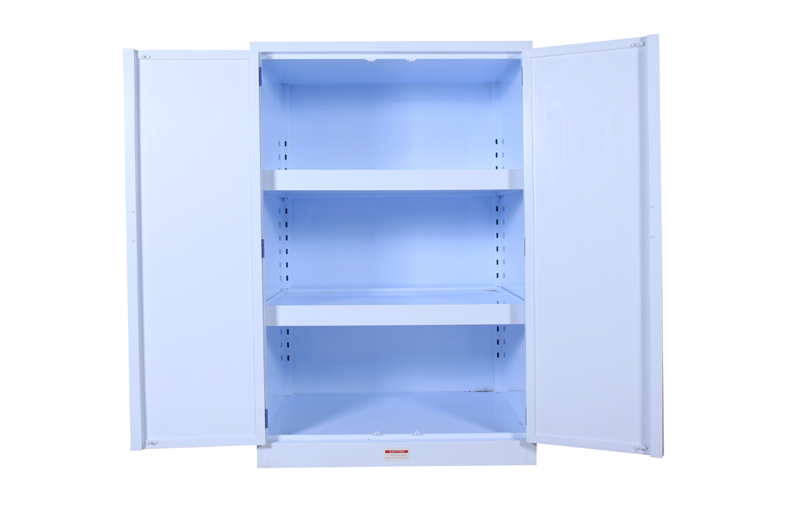 在各个工厂或实验室,都存放着大量具有强腐蚀性的化学品物质(例如:盐酸、硝酸或者氢氧化钠等化学品物质)。对于这类化学品物质的储存,显得尤其重要。目前,市场上面有很多类型的安全柜,用于分类存储不同性质及危险等级的化学品,但是,用于储存具有强腐蚀性的化学品,只有选择强酸强碱存储柜。
